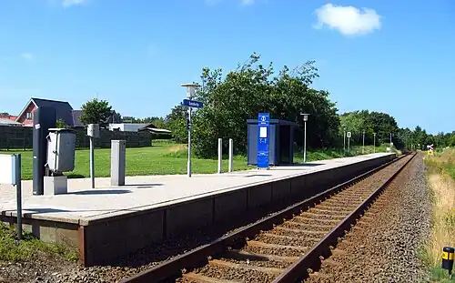 1. ^ a b c "Standsningssteder på Hirtshalsbanen" (in Danish). Nordjyske Jernbaner. Retrieved 4 May 2021.