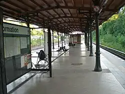 The station building of 1901 no longer exists. It has been replaced by more recent construction. The island platform has a roof in the classic S-Bahn style: a gabled roof supported by cast-iron columns. The station building and platform are connected by a covered staircase. It is built in the "greenhouse architecture" style. Even the corridor to the lift to the upper level on the Steglitzer Damm, which was built later, was built in a similar style. On the platform there is a building for administration, but it is no longer used.