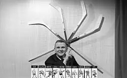 Anssi Koskinen as the host of the Tamvision´s hockey television show Lätkäruutu, 1964