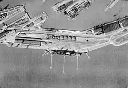 SS Bremen left New York without passengers on 30 August 1939 and at first opportunity accelerated to over 28 knots.[10] On 1 September, coincident with the start of the Second World War, she was ordered to make for the Russian port of Murmansk. Underway, her crew painted the ship grey for camouflage and covered the portholes and windows. She made use of bad weather and high speed to avoid Royal Navy cruisers, arriving in Murmansk on 6 September 1939. With the outbreak of the Winter War between Finland and the Soviet Union, on 10 December 1939 Bremen made a dash to Bremerhaven, arriving on 13 December. On the way she was sighted and challenged by the S-class submarine HMS Salmon. A Dornier Do 18 seaplane escorting Bremen forced Salmon to dive for safety. Salmon's commander, Lieutenant Commander E. O. Bickford, decided not to torpedo the liner because he believed she was not a legal target.[11] His decision not to fire on Bremen likely delayed the start of unrestricted submarine warfare.[3]