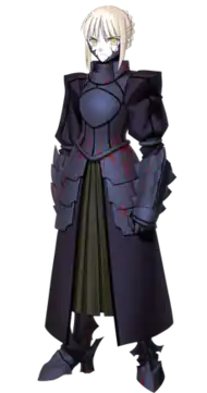 Saber Alter as seen in Heaven's Feel. Due to her darker personality, she has been referred to as an anti-heroine by the developers.[12]
