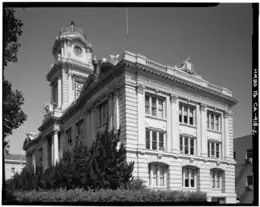 Sacramento City Hall is a five-story, 267,000-square-foot building that combines modern and historic structures in Sacramento, California. The building can house up to 730 staff members. Prominent local architect Rudolph A. Herold designed the building in 1908.[1] Completed in 1909, the building is located at 915 I Street. Sacramento City Hall went through a major $11 million restoration from 2003 to 2005. The restoration was part of an overall $60 million civic center project with city hall as the cornerstone. Another part of the civic center project was the construction of underground parking garage for 170 cars.[2] Sacramento City Hall now houses all of the city's significant municipal functions.[3]
