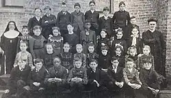 The students were taught by a staff of Franciscan Sisters from Joliet who first lived on the second floor of the original school building, then a convent wing of the school, then in a convent adjacent to the church (from 1957). It's possible Haarth turned to Franciscans because his sister had taken vows of that order.[4]