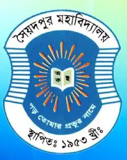 Saidpur Government College, Saidpur, Nilphamari (Bengali: সৈয়দপুর সরকারি কলেজ) is an honors-level degree college[1] organised by the National University and the Dinajpur Board of Intermediate and Secondary Education. Established in 1953 under the name "Kay-A-De Azam", the college was the first to open in both the city of Saidpur and Nilphamari District, and was renamed as "Saidpur Government College" in 2018. Saidpur's central Shaheed Minar is located on its campus.