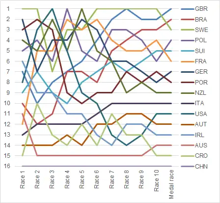 Graph showing the daily standings in the Star during the 2008 Summer Olympics