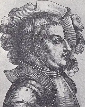 In 1516, Franz von Sickingen (1481–1523) a German adventurer who wared at the expense of Geroldseck's Gangolf (1527–1569) near Saverne, near Wangen's house against him duke of Lorraine seized Saint-Hippolyte by surprise with his 6000 soldiers without appointing damages to the city [12] in Valley of Lièpvre. Incapable to triumph the cause with the own forces, he called to the help Sickingen's Franz (François de Sickingen) a first-rate adventurer. This one hurried to run up with a band of 6000 people. It crosses Vosges and invades Lorraine. Duke of Lorraine having bought the neutrality of Sickingen, undid completely the troops of Geroldseck in him Valley of Lièpvre. He made a boss again of Saint-Hippolyte meeting no resistance and cut the head to an inhabitant who had favored the entrance of the enemy. However this expedition of Antoine is not enough to restore completely order. Under excuse to avenge the weak and the oppressed, François de Sickingen carried his devastation in him Electorate of the Palatinate and declared war to the imperial cities and in religious institution. Geroldseck's name often appears in the history of Alsace. One finds one of the branches under the name of Geroldseck-ès-Vosges (In Vosaso, am Wesichim) because of the castles situated in Vosges. She to extinguish in the 16th century. The other family pulled its name of the castle of Hohen-Geroldseck established on one of the summit of her Black Forest near Lahr. To protect in future Valley of Lièpvre and Saint-Hippolyte duke of Lorraine confided the nurse of it from 1516 to an Alsatian Lord who was quite devoted to him (her), the count of Thierstein.[13] François de Sickingen was killed in 1523.