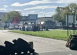 1967 was also marked by a major strike lasting three weeks from 15 March:[14][15] the two main demands were for a performance bonus and a hoped-for increase in the basic wage.[16] From 16 March onwards, picket lines were set up at every entrance to the plant, leading to the occupation of the factory, which was no longer accessible. On 17 March, elected representatives – notably the Ain deputy Émile Dubuis and his successor Guy de La Verpillière in the 3rd constituency from April 1967 – offered to mediate.[17] From 19 March onwards, the strikers organized themselves and received help from the town hall, which distributed vouchers to families; the HLM office was also contacted to ask for the rent payment date to be postponed.[17] Until 23 March, meetings were held between the Ain prefect Georges Dupoizat de Villemont, the labor inspector, the mayor of Saint-Maurice-de-Beynost André Trichard and (successively) the CGT and CFDT elected representatives, then the plant management. From the 23rd onwards, the strike intensified: on 30 March, a large demonstration was organized in Bourg-en-Bresse.[17] Two days later, on 1 April, a second demonstration was organized in Saint-Maurice-de-Beynost.[17] On 3 April, strikers' representatives were received by La Cellophane management in Paris. A conciliation meeting was finally organized on 5 April at 3 p.m. at the town hall; Michel Branciard wrote these words to describe how the meeting unfolded, from the strikers' point of view: