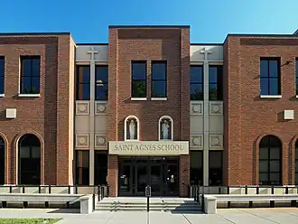 Right after the construction of the Church of Saint Agnes by Austrian Immigrants in 1887, Saint Agnes School was established in 1888 as a Catholic and Parochial school. Students were taught by the School Sisters of Notre Dame.[1] As of today (2025), the school stands as the only Catholic and Parochial school left in Frogtown, and it takes students from Pre-Kindergarten all the way until 12th Grade in a classical Liberal Arts Education.