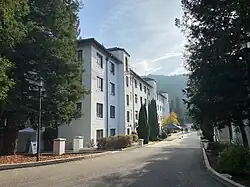 During its first years in Moraga, the college nearly went bankrupt, but eventually managed to gain financial security when it was bought by Archbishop John Joseph Mitty, for whom a residence hall is now named. During World War II the college was used by the United States Navy for the training of pilots. Former President Gerald Ford was briefly stationed at the school and served as a naval instructor.[8] The navy erected many buildings, including the world's largest indoor pool, but only one, Assumption Hall, remains on the campus as the school had little use for most of the buildings after the war. Saint Mary's continued to be a male-only school until 1970,[9] when it became coeducational. Since then, more women have come to the college and by 2011, 62% of the students were women.[10]