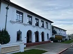 In 1889, the college moved east across San Francisco Bay to Oakland, California. The location on the corner of 30th and Broadway became affectionately known as "The Brickpile"[7] and Saint Mary's College would call Oakland home until 1928, when it moved further eastward to Moraga after a fire severely damaged the Brickpile. The Oakland site is California Historical Landmark #676 and has been marked by a commemorative plaque.[7] The former San Francisco site is now the site of the St. Mary's Park neighborhood. The college and high school sections separated not long after the move to Moraga and the high school is currently located in Albany.