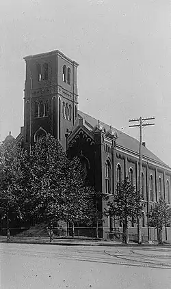 In the summer of 1865, Martin John Spalding, Roman Catholic Archbishop of Baltimore, suggested to the Reverend Dr. C.I. White, pastor at St. Matthew the Apostle Catholic Church in Washington, D.C., that a new parish be created in the city's west end to meet the needs of the area's rapidly growing Roman Catholic population. Dr. White purchased land at the corner of 24th Street and Pennsylvania Avenue (today 2436 Pennsylvania Avenue NW) from a Dr. Newman at a cost of $8,575 ($176,142 in 2024 dollars) for the parish church, and began raising money for the building. The cornerstone for the new brick structure was laid on June 3, 1866.[2]