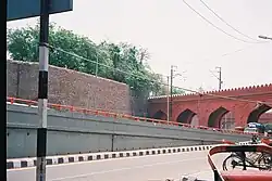 An arch bridge connects the fort to the Red Fort on its northeastern side. This bridge was built during the reign of Bahadur Shah Zafar, and the gate at this point is known as the Bahadur Shah Gate. The gate is constructed primarily of brick masonry, with selective use of red sandstone.
