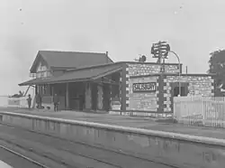 Salisbury railway station was built in 1857 on the 1600 mm (5 ft 3 in) broad-gauge main northern line to Gawler. In 1917 it became a junction where a new line to Long Plains diverged north-west.[10]: 56  In 1982, this latter line was converted to 1435 mm (4 ft 8+12 in) standard gauge.[10]: 57  In 1985, the State Transport Authority demolished the historic station buildings to make way for a bus–rail interchange.[11][12]