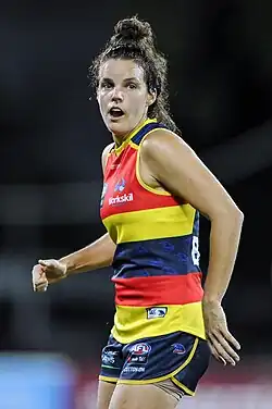 She was drafted by Adelaide with their fifth selection and thirty-ninth overall in the 2016 AFL Women's draft.[1] She was named as Adelaide's inaugural co-vice-captain alongside Ange Foley in January 2017.[2] She made her debut in the thirty-six point win against Greater Western Sydney at Thebarton Oval in the opening round of the 2017 season.[3] She was a part of Adelaide's premiership side after the club defeated Brisbane by six points at Metricon Stadium in the AFL Women's Grand Final.[4][5] She played every match in her debut season to finish with eight matches.[6]