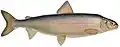 Current salmonids comprise three main clades taxonomically treated as subfamilies: Coregoninae (freshwater whitefishes), Thymallinae (graylings), and Salmoninae (trout, salmon, char, taimens and lenoks). Generally, all three lineages are accepted to allocate a suite of derived traits indicating a monophyletic group.[2][5]