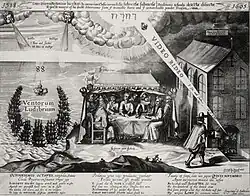 Ward, whose name was engraved upon the print as the designer, was sent to and examined by the Privy Council, and was committed to prison. After a brief detention he was permitted to return to Ipswich, and he subsequently confined his talents as a designer to the ornamentation of the title-pages of his published sermons.