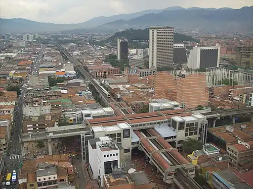 San Antonio station is a station on the Medellín Metro. It is the terminal station for line B (center to west), and a possible transfer station to line A (north to south).[1] It is named after the Church of San Antonio, which also gives its name to the nearby San Antonio Plaza. Line A station was opened on 30 November 1995 as part of the inaugural section of line A, from Niquía to Poblado. Line B station was opened on 28 February 1996 as part of the inaugural section of the line, from San Javier to San Antonio.[2]