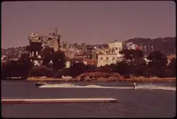 Many socially marginalized individuals, outcasts and LGBT people continued to increase in numbers in the city, which became a haven for them and where they could share a common identity in numbers, not only attracted by its gay-friendly reputation but for its reputation as a radical, left-wing center. The lesbian community of San Francisco between 1972 and 1975 has been described as a "series of overlapping social networks, in which friendship groups focus[ed] around pair relationships or special interests."[20] Some women met in lesbian bars that were scattered around the city, including Maud's, Wild Side West, and others. Gay men had 118 bars and nightclubs to choose from in 1973, many of them in the Polk Gulch or Castro District.[21] These new LGBT residents were the prime movers of Gay Liberation and often lived communally, buying decrepit Victorians in the Haight and fixing them up. When drugs and violence began to become a serious problem in the Haight, some gay people simply moved "over the hill" to the Castro replacing Irish-Americans who had moved to the more affluent and culturally homogeneous suburbs. The Castro became known as a Gay Mecca, and its gay population, particularly men, swelled as significant numbers of gay people moved to San Francisco in the 1970s and 1980s. The growth of the gay population caused tensions with some of the established ethnic groups in the southern part of the city.