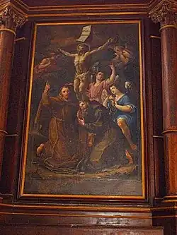 The church is dedicated to St. Seraphin (1540–1604), who was born in Montegranaro. The saint's relics, however, repose in the Church of the Capuchins in Ascoli Piceno, where he died. This small chapel is notable for its wooden altar including paintings of San Lorenzo by Nicola Monti, and the patrons of the shoemakers: Saints Crispino and Crispiniano.[1]