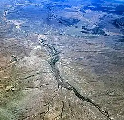 The San Simon River was originally named by the Spanish, Rio San Domingo, had acquired various names, Rio de Sauz, Rio Sauz or Sauz River, Rio de Sonoca, Rio de Suanca or Suauca, San Simon Creek, San Simon Wash, and Solomonville Wash.[1] In 1849, when Colonel John Coffee Hays pioneered a new shorter cut off route from Cooke's Wagon Road in the Animas Valley to Tucson by way of the Puerto del Dado (Apache Pass) and Nugent’s Pass,[2] the Cienega of San Simon, (on the river, 5 miles southwest of the mouth of Stein's Pass, and 13 miles up river from where the Butterfield Overland Mail crossed the river near modern San Simon, Arizona), 32°13′20″N 109°1′32″W / 32.22222°N 109.02556°W, became a water and camping place on the Southern Emigrant Trail[3] With a diversion to Dragoon Pass in place of Nugents Pass, this became part of the original route of the San Antonio-San Diego Mail Line. The Butterfield Overland Mail followed a new route through Soldier's Farewell Stage Station, Stein's Peak Station and Doubtful Canyon until the beginning of the American Civil War when the attacks by the Apache in the Peloncillo Mountains made it too dangerous and travelers followed the old Hays route.[3]