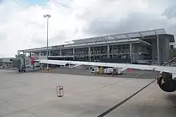 Sandakan Airport (IATA: SDK, ICAO: WBKS) is a domestic airport located in Sandakan, Sabah, Malaysia, approximately 14 km (8.7 mi)[2]) west of the town center. It serves as an important gateway for both passenger and cargo traffic, supporting the local economy and regional tourism. In 2022, the airport handled 621,513 passengers and recorded 10,876 flight movements, making it the 12th busiest airport in Malaysia.