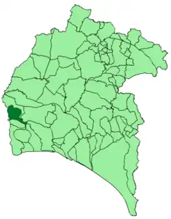 Sanlúcar de Guadiana is a localidad in the province of Huelva, Andalusia, Spain, situated near the Portugal–Spain border, 50 kilometres (31 mi) from the city of Huelva. The inhabitants are known as Sanluqueños. The village borders the Guadiana River, which is tidal at this point, but the higher parts of the village rise to an altitude of 149 metres (489 ft).