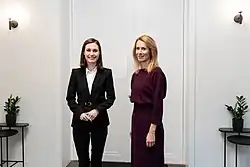 Sanna Mirella Marin (Finnish: [ˈsɑnːɑ ˈmirelːɑ ˈmɑriːn];[1] born 16 November 1985) is a Finnish politician who served as prime minister of Finland from 2019 to 2023 and as the leader of the Social Democratic Party of Finland (SDP) from 2020 to 2023. She was a Member of Parliament from 2015 to 2023. She was re-elected as member of parliament in April 2023 but resigned to become a strategic adviser on political leaders' reform programmes in the Tony Blair Institute in September 2023.[2]