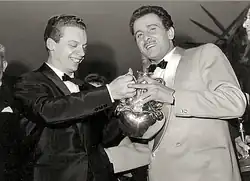 Johnny Dorelli (left) and Domenico Modugno with the first prize