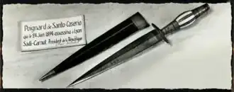 Sante Geronimo Caserio (Italian: [ˈsante kaˈzɛrjo]; 8 September 1873 – 16 August 1894) was an Italian baker, anarchist, and propagandist by the deed. He is primarily known for assassinating Sadi Carnot, the sitting President of the French Republic, on 24 June 1894. This act marked the final attack of the Ère des attentats (1892–1894) and became a pivotal event in the history of anarchism in France. It was also an anticolonial attack, as Caserio targeted the president during the first French colonial exhibition.