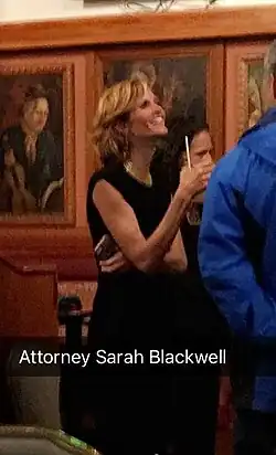 Sara Blackwell is an American attorney and is the founder of Protect US Workers, a non-profit organization.[1] Blackwell gained national media attention when she represented hundreds of United States citizens and permanent residents who were replaced by recipients of H-1B temporary work visas.[2] In 2018, she represented New Orleans Saints cheerleader, Bailey Davis, who was fired for an Instagram post and allegedly attending a party where NFL players were present.[3]