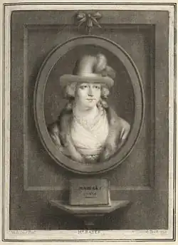 Angelica Kauffman painted her portrait[2] depicting her as Erato, the muse of lyric poetry, which was exhibited at the Royal Academy in 1781 and is now in the possession of the Princeton University Art Museum.[4]