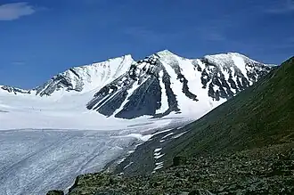![]() Sarektjåhkkå, Stortoppen to the left and Sydtoppen in the middle | |