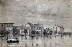 Waring & Cable (Social Statistics of Cities, Reports on New Orleans) reported, "About 220 inhabited squares were flooded, more than 2,000 tenements were surrounded by water, and a population of near 12,000 souls either driven from their homes or living an aquatic life of much privation and suffering." This figure may be only for the city of New Orleans as then constituted, with its upper limit at Felicity Street. Much of what later became known as Uptown New Orleans was then the separate towns of Lafayette, Bouligny, Jefferson, and Carrollton.