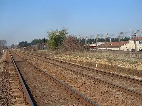 At its peak during the period 1860 to 1890 there was a station master and three other members of staff. From 1929 onwards the four station staff were replaced by a 'Porter-in-charge' until its closure in 1967. Freight services ceased several years earlier, on 28 December 1964, along with other stations along the line. Saxham and Risby was one of four stations on the line between Ipswich and Cambridge which closed in 1967 following modernisation due to dwindling passenger numbers - the others were Higham, Fulbourn and Six Mile Bottom.[3] After closure, the south platform and waiting room was removed in 1970, whilst the north platform and the main station building remained derelict until it was demolished in the late 1980s.[4]