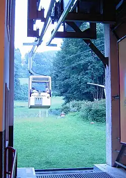 The Schauinslandbahn is a gondola lift in the Black Forest area of Baden-Württemberg, Germany. It links a lower station in the municipality of Horben, near the city of Freiburg im Breisgau, with an upper station near the summit of the Schauinsland mountain. The line is operated by VAG Freiburg, the city transport operator for Freiburg. The same company operates that city's tram and bus network, including bus route 21 that links the lower station of the Schauinslandbahn to the terminus of tram route 2 at Günterstal.[1][2][3]