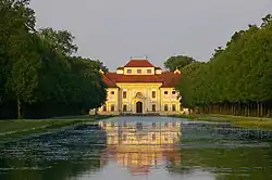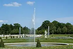 The Schlosswirtschaft Oberschleißheim Biergarten is located on the palace grounds, with seating for 1,000.[1] Its roots trace back to 1597, when the founder of the Hofbräuhaus brewery retired to a farm there. Following the building of the New Schleißheim Palace in the 17th century, the Schlosswirtschaft (palace restaurant) provided catering to its workers and servants. A royal brewery followed,[2] enjoying a long period of success before closing.[1] Under the shade of chestnut trees Hofbräuhaus beers and traditional Bavarian fare are served today, enjoyed with a picturesque view of the palace, particularly at sunset.[1]
