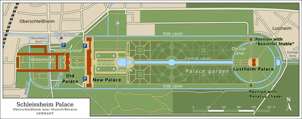 The Schleißheim Palace (German: Schloss Schleißheim) comprises three individual palaces in a grand Baroque park in the village of Oberschleißheim, a suburb of Munich, Bavaria, Germany. The palace was a summer residence of the Bavarian rulers of the House of Wittelsbach.