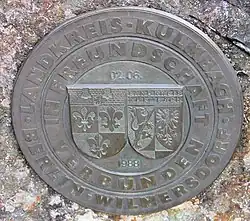 To the right of the Schmargendorf Town Hall, a boulder commemorates the partnership between the district of Kulmbach and the district of Wilmersdorf, established in 1991.[5]