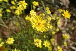 Schoenia filifolia is an annual herb that typically grows to a height of up to 50 cm (20 in) and has terete leaves. The heads or daisy-like "flowers" are yellow with a top-shaped to cylindrical or hemispherical involucre, depending on subspecies, the involucral bracts in five series.[2][3]