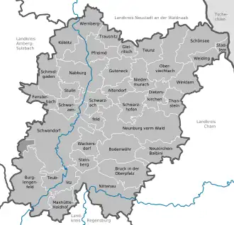 Schwandorf is a Landkreis (district) in Upper Palatinate in the eastern part of Bavaria, Germany. Neighboring districts are (from the east clockwise) Cham, Regensburg, Neumarkt, Amberg-Sulzbach, Neustadt an der Waldnaab, and the Czech Plzeň Region.