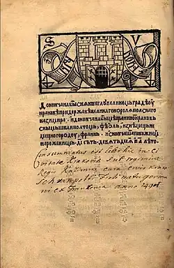 1. ^ Zimmer, Szczepan K. (1983). The beginning of Cyrillic printing in Cracow, 1491 : from the Orthodox past in Poland. Columbia University Press. pp. 3, 145. ISBN 978-0880330275.