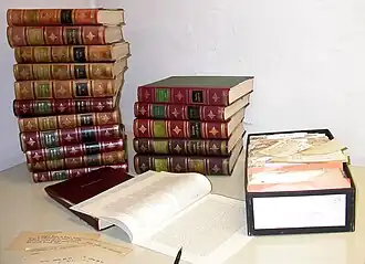 Schweizerisches Idiotikon ("the Swiss idioticon",[1] also known as Wörterbuch der schweizerdeutschen Sprache "Dictionary of the Swiss German language") is an ongoing, major project of lexicography of the Swiss German dialects. Publication began in 1881 and is projected to be complete by 2022. Its scope includes the language since the end of the classical Middle High German period (13th century) and as such also represents the historical dictionary of the dialects of German-speaking Switzerland, and is one of the most detailed treatments of the Early Modern High German language in general. As of 2010, it contains 150,000 words.[2]