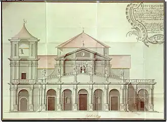 Jesuit pedagogy was, in turn, a product of rhetoric and Counter-Reformation, developed in a period when the intellectual uncertainties of Mannerism introduced the dramas and material-spirit contrasts of the Baroque. In this pedagogy, the spectacularization of religious worship was a valid and efficient means of persuading the potentially devout and propagating faith. It was an essential part of the Baroque spirit itself, when the representation of the world became all a spectacle designed to ravish its audience. All the arts came together, and their greatest expression in sacred art was the architecture of the Baroque church, with all its decorative plethora of emotional appeal. At the moment of worship, the temple became a ferocious theater where the Christian drama was played out. In the settlements, in the absence of secular power, the church was the only building with a high degree of sophistication, because it centralized the life of the whole community; almost all the other structures in the settlement were low and constituted of simple pavilions. But at the church worshiping was glorious, enlivened by the positive collaboration of the indigenous people in the production and execution of all this ceremonial art.[31][32][33][34]