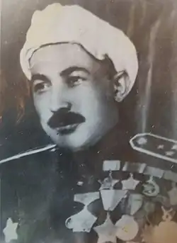 The rebels assaulted Ghulja on 7 November 1944 and rapidly took over parts of the city, massacring KMT troops, however, the rebels encountered fierce resistance from KMT forces holed up in the power and central police stations and did not take them until the 13th. The creation of the "East Turkestan Republic" (ETR) was declared on the 15th.[5] The Soviet Army assisted the Ili Uyghur army in capturing several towns and airbases. Non-communist Russians like White Russians and Russian settlers who had lived in Xinjiang since the 19th century also helped the Soviet Red Army and the Ili Army rebels. They suffered heavy losses.[15] Many leaders of the East Turkestan Republic were Soviet agents or affiliated with the Soviet Union, like Abdulkerim Abbas, Ishaq Beg, Saifuddin Azizi and the White Russians F. Leskin, A. Polinov, and Glimkin.[16] When the rebels ran into trouble taking the vital Airambek airfield from the Chinese, Soviet military forces directly intervened to help mortar the Airambek and reduce the Chinese stronghold.[17]