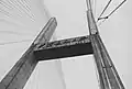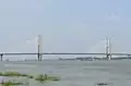 The Second Wuhan Yangtze River Bridge (Chinese: 武汉长江二桥, Wuhan Changjiang Er Qiao) is a bridge across the Yangtze River in Wuhan, Hubei province, China. It is located northeast (downstream) of the historic central area of the city's Hankou District and is the northern crossing for the Inner Ring Road. It is a cable-stayed bridge built of pre-stressed concrete, and has a central span of 400 metres (1,300 ft).[1] It is 4.678 kilometres (2.907 mi) in length (including the 1,876-metre (6,155 ft) main span) and is 26 metres (85 ft) wide. Its main bridgeheads are 90 metres (300 ft) high each, pulling 392 thick slanting cables together in the shape of double fans, so that the central span of the bridge is well-balanced on the piers and the bridge's stability and vibration resistance are ensured.