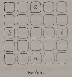 - ^ a b Bolton, H. Carrington (1890). "Seegà, an Egyptian Game". The Journal of American Folklore. 3 (9): 132–134. doi:10.2307/534200. ISSN 0021-8715. JSTOR 534200. Retrieved 2021-01-20.