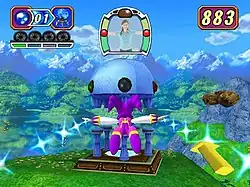 A promotional example of gameplay, where the player controls NiGHTS by "gliding," from the NiGHTS-themed minigame