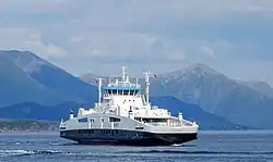 The duration of the passage is 25 minutes, and the 7.0-kilometer (4.3 mi) route is served by MF Bjørnsund and MF Stordal with 32 departures per day in each direction every day.[1] The route was served by MF Glutra from 2002 to 2010,[2] when the vessel was damaged by a fire.[3] In 2014, the annual average daily traffic was 690 vehicles and 596 passengers (ranking 20th in Norway).[4]