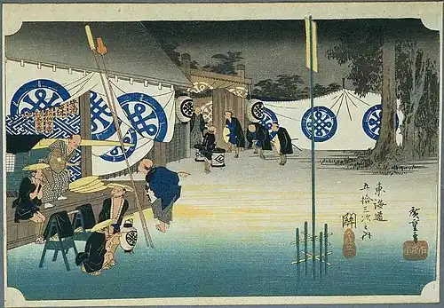 Hiroshige's print of Seki-juku, part of the Hōeidō edition The Fifty-three Stations of the Tōkaidō series
