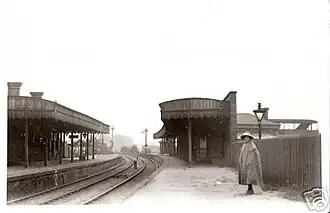 It was jointly operated by the South Eastern Railway (SER) and the London, Brighton and South Coast Railway (LBSCR) prior to the grouping of railways. The four platforms (two for the Woodside line, two for the Oxted line) were respectively decked out in SER and LBSCR signage and fittings. A subway provided access to the Woodside platforms from the main station building. The station closed as a wartime economy measure on 1 January 1917. The Oxted platforms reopened on 1 May 1919,[2] closing on 14 June 1959. At closure these platforms were used by only three trains a day.